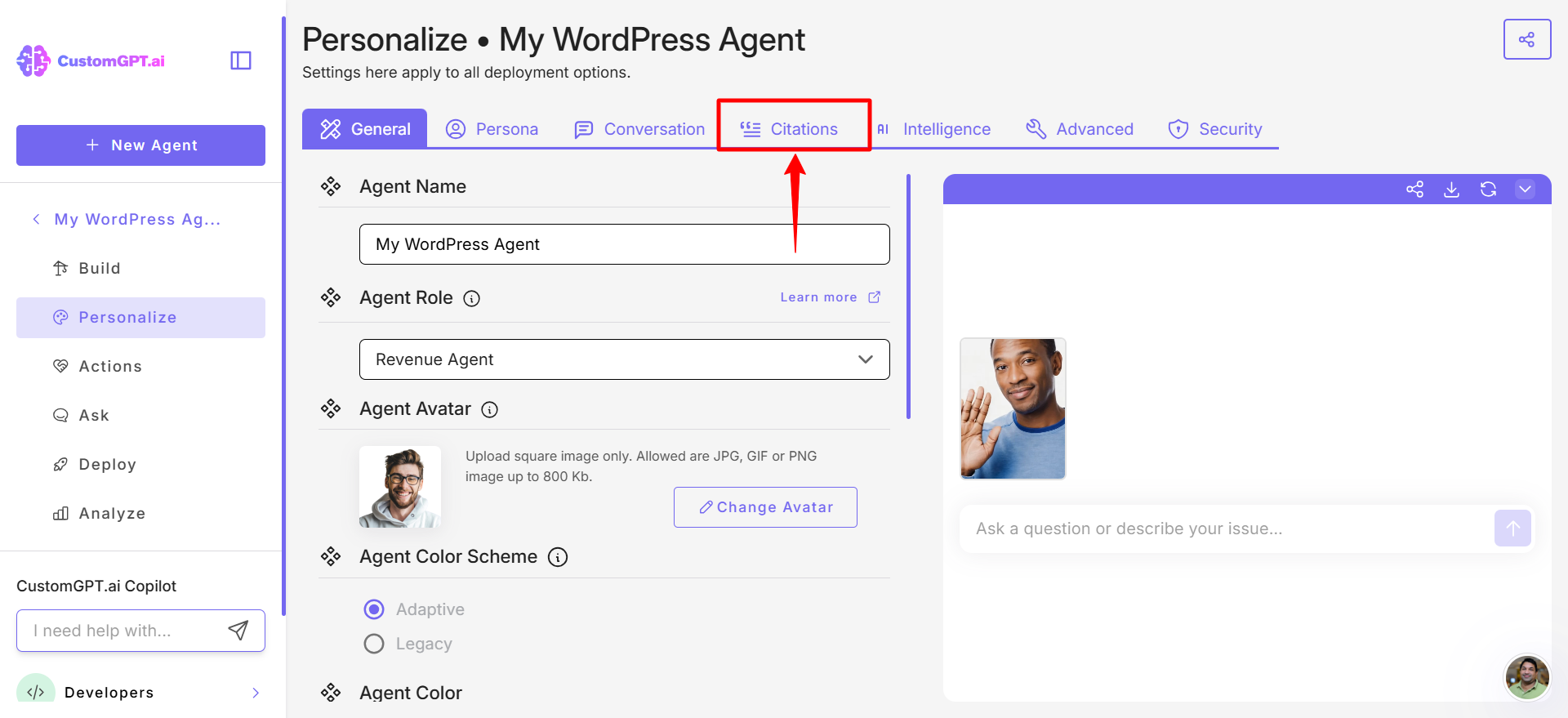 - Go to your agent and click Personalize.