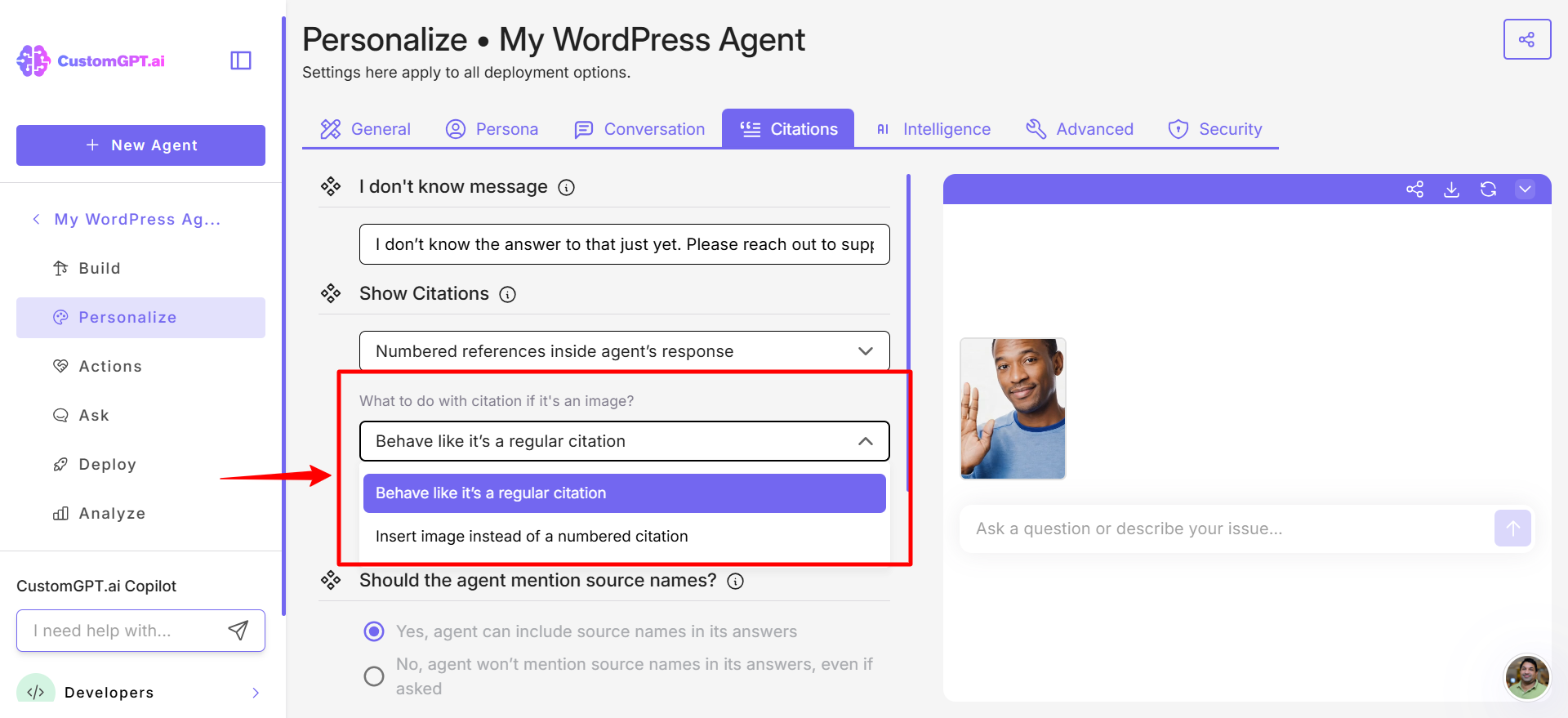 This step-by-step guide shows you how to display images in your agent's responses when image-based citations are present.
