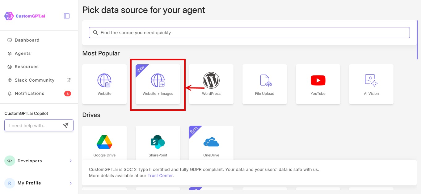 This step-by-step guide explains how to build an AI agent from your website using the Website + images data source.