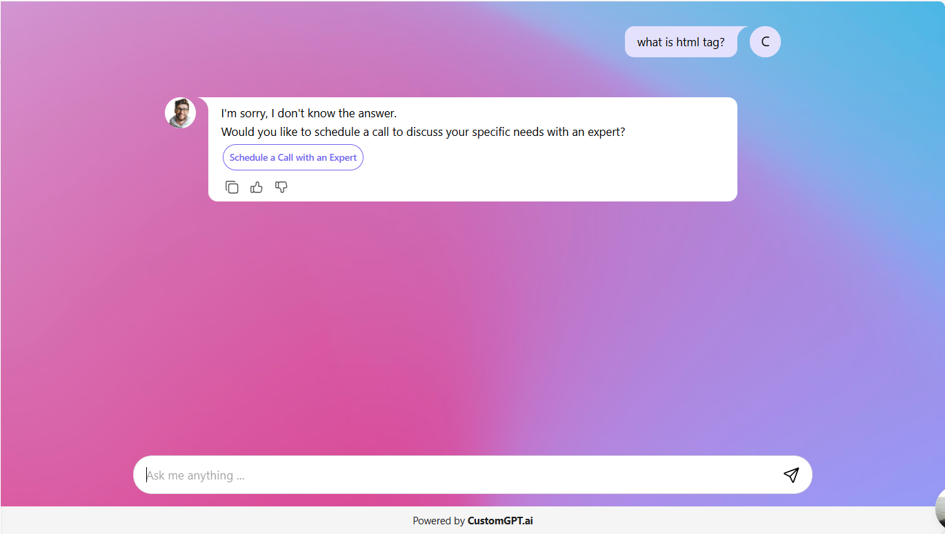 - I’m sorry message: The button appears when the agent apologizes (e.g., low confidence, cannot comply, limited info). Ideal for Human hand-off or a contact us flow.