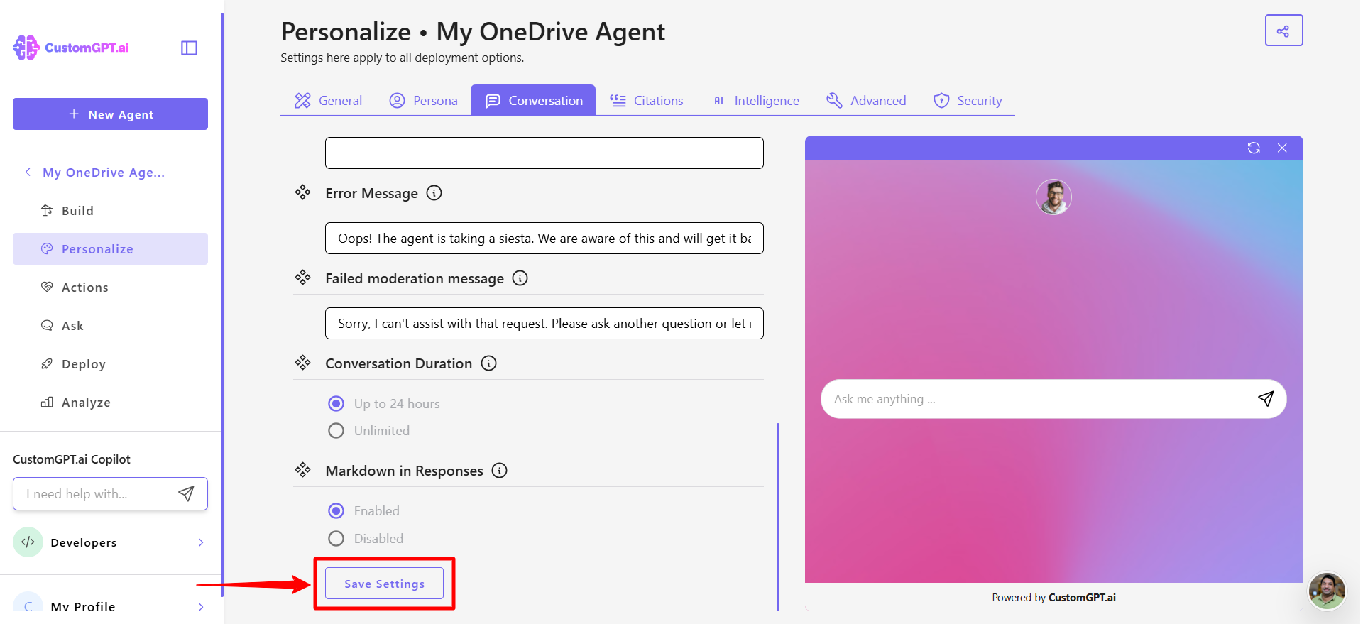 - Select AI agent you want to update and click Personalize.