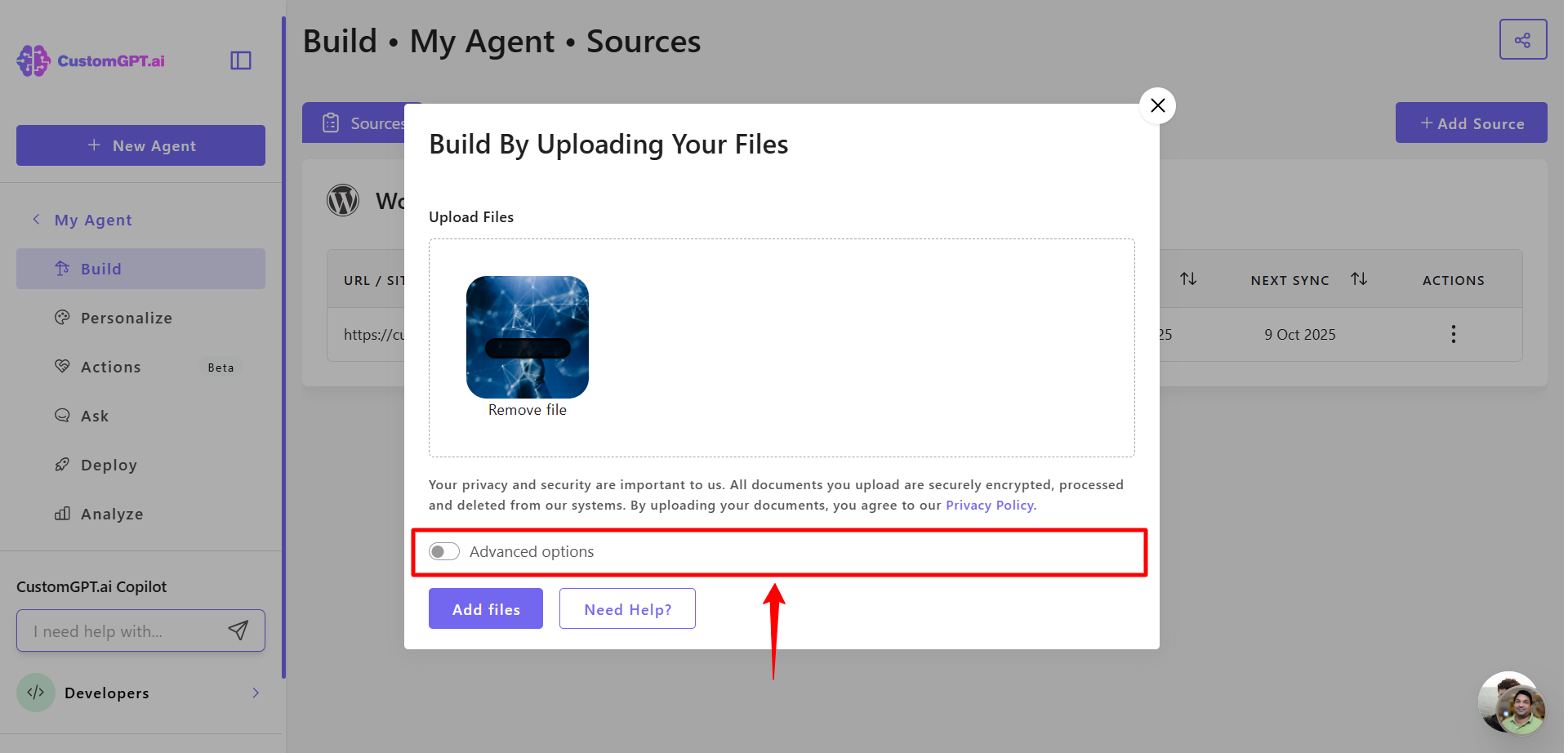 This guide explains how to enable AI Vision when uploading images to your agent. With AI Vision, your agent can automatically analyze and summarize images—transforming visual content into useful knowledge.