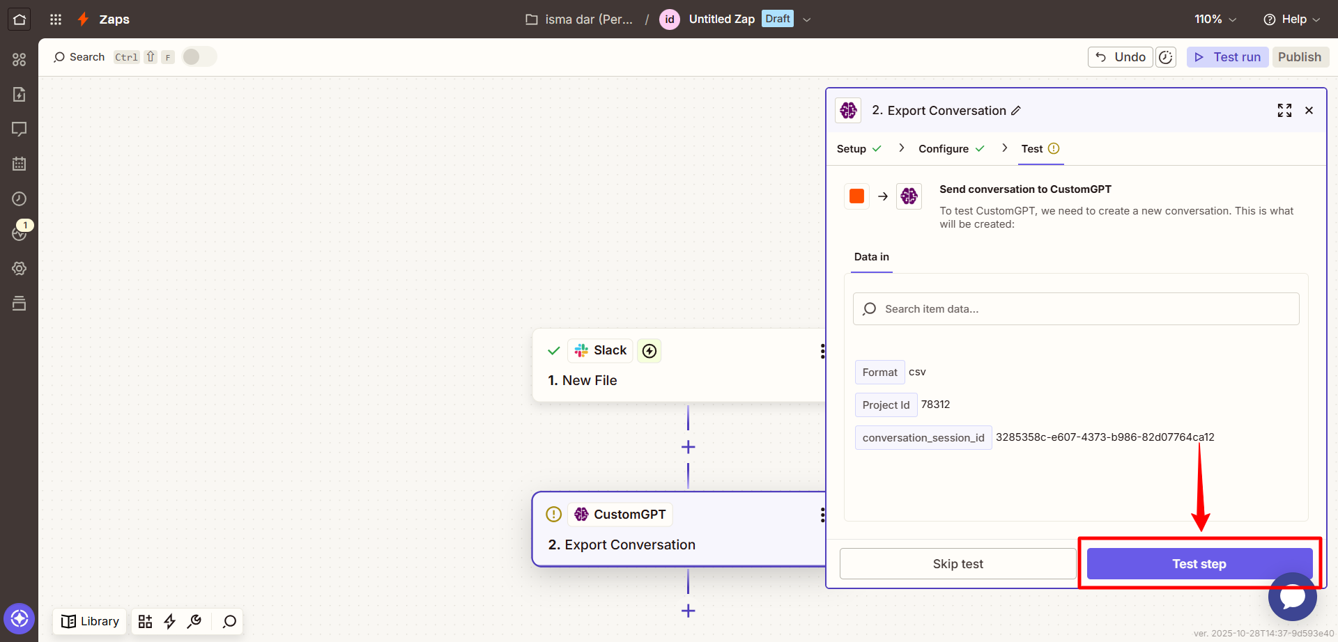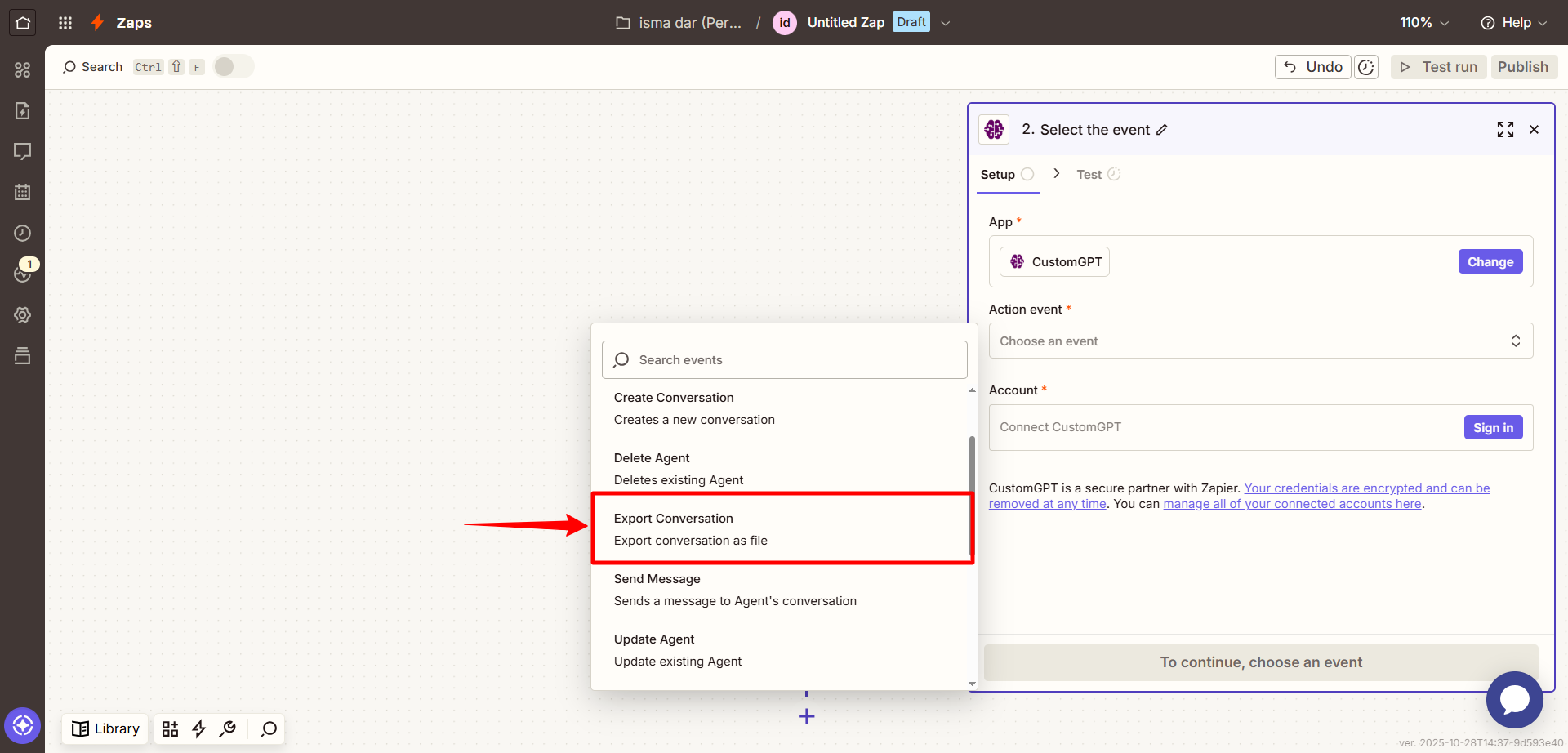 This guide explains how to use the Export Conversation action in Zapier to automatically download all messages from a CustomGPT conversation in your preferred file format.