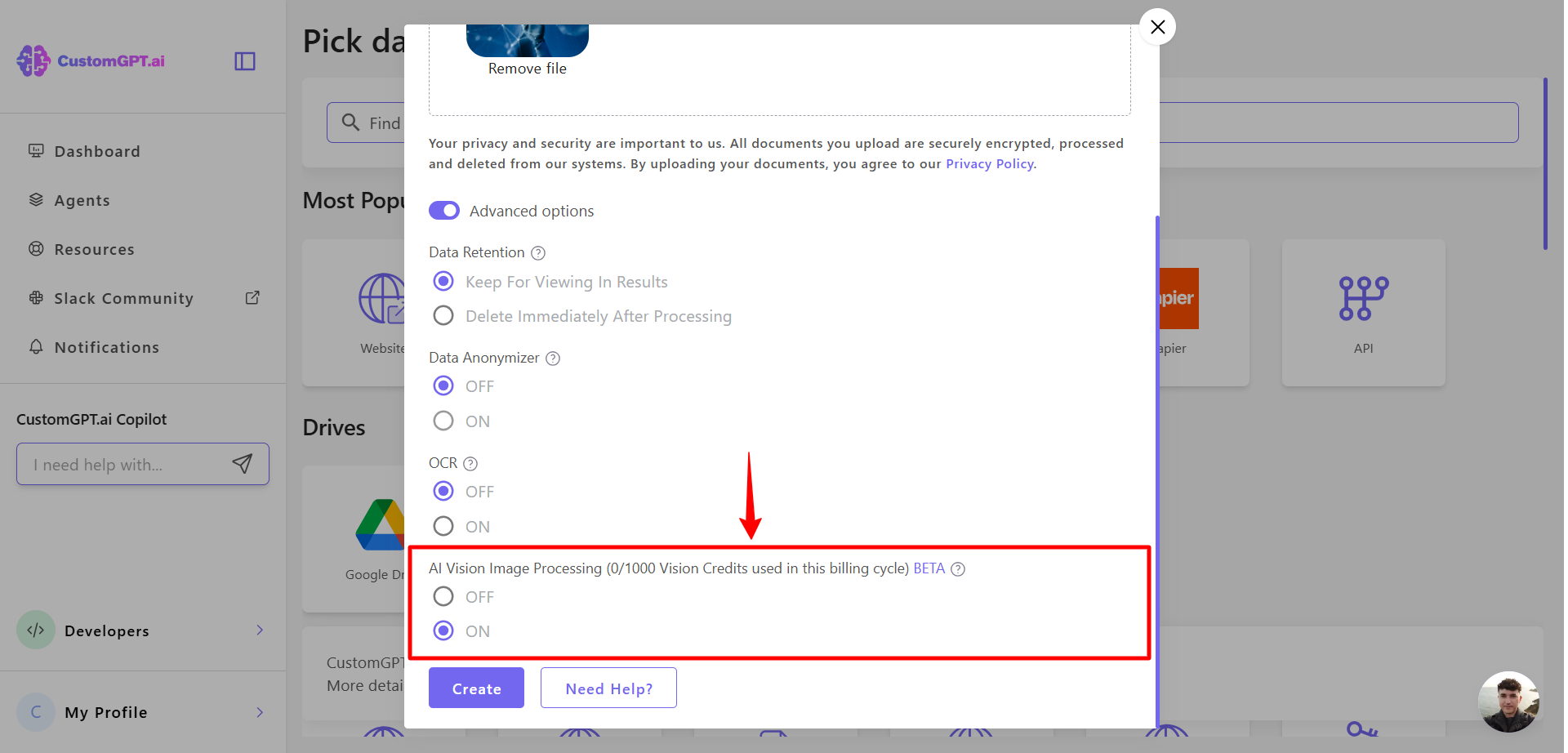 - Enable AI Vision for uploaded images