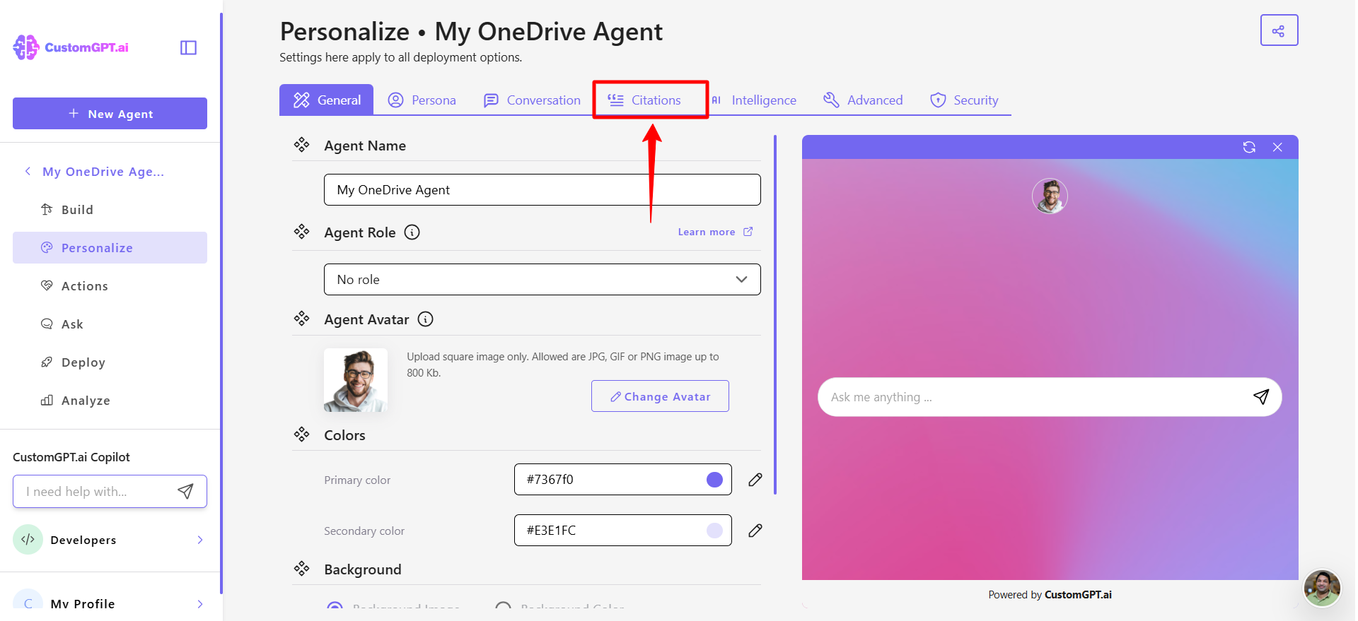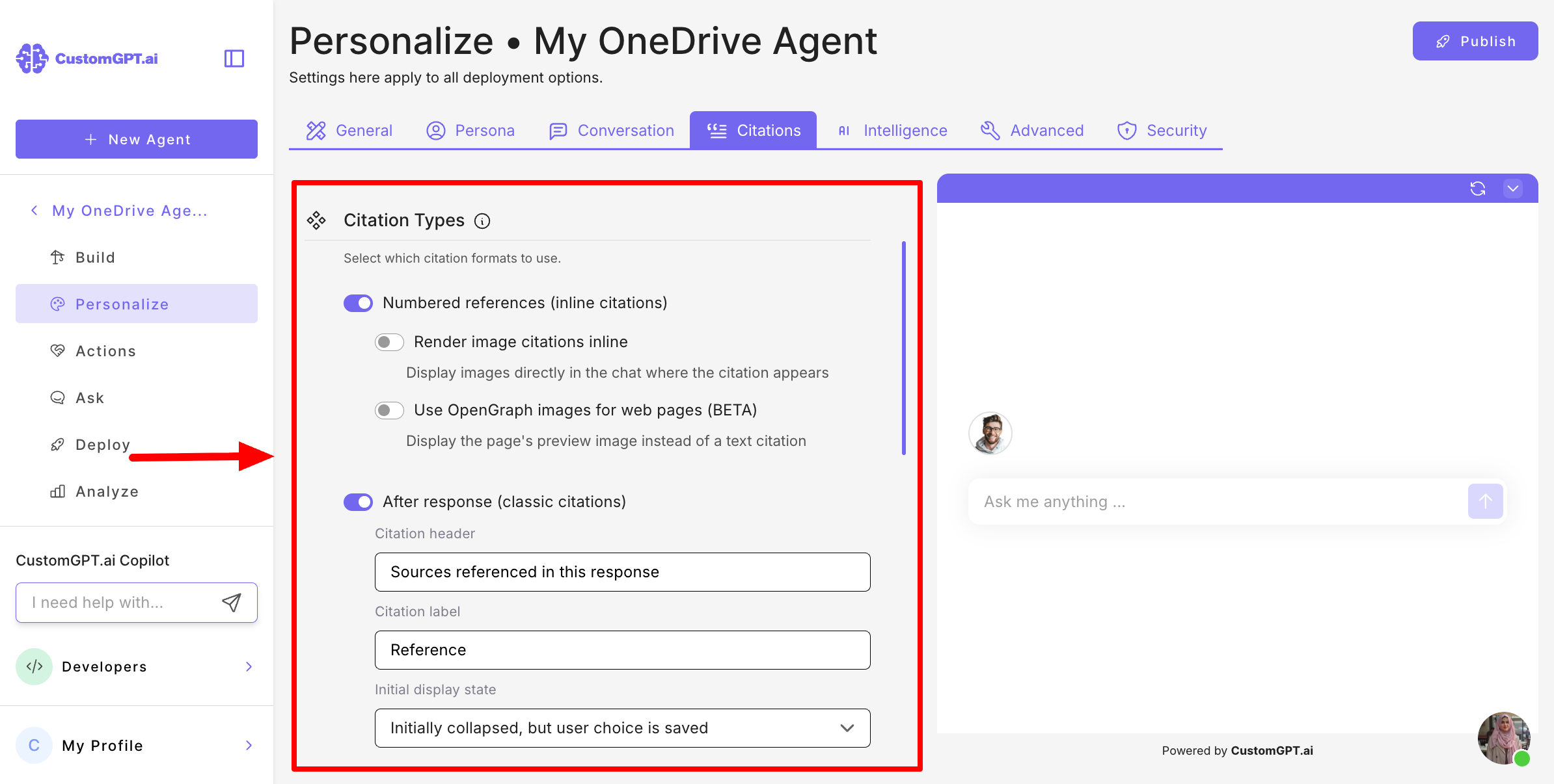 This step-by-step guide shows you how to configure the way citations are displayed for your AI agent.