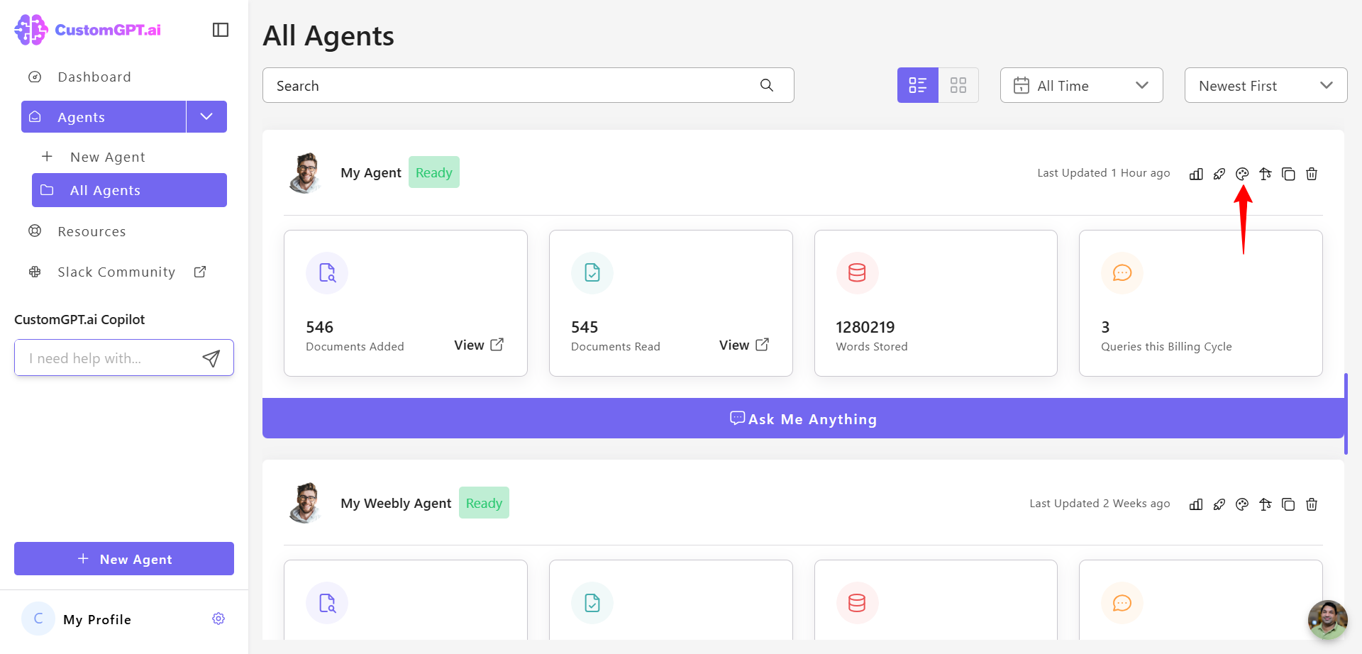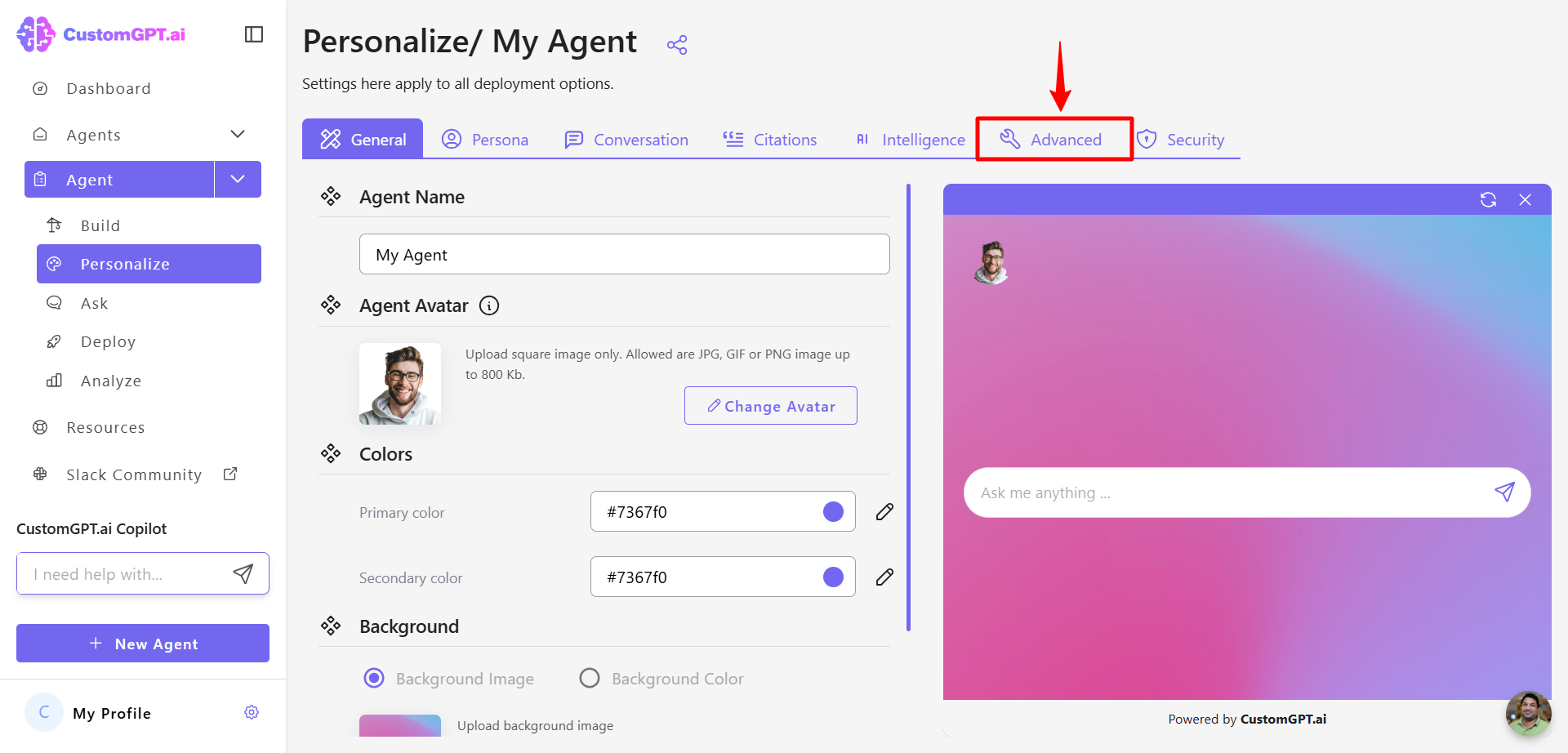 - Click the Personalize icon next to the agent you want to customize.