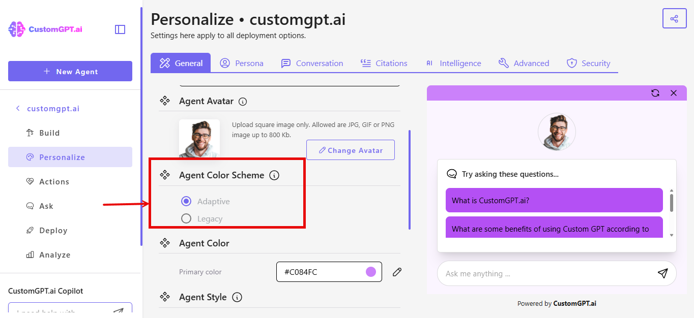 - Adaptive - Set one primary color, agent colors adjust automatically