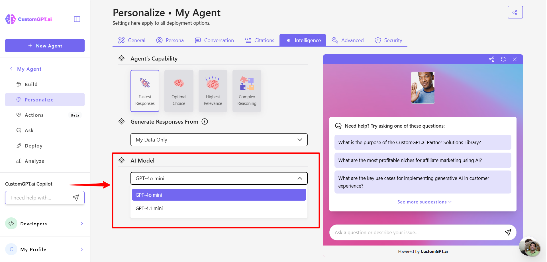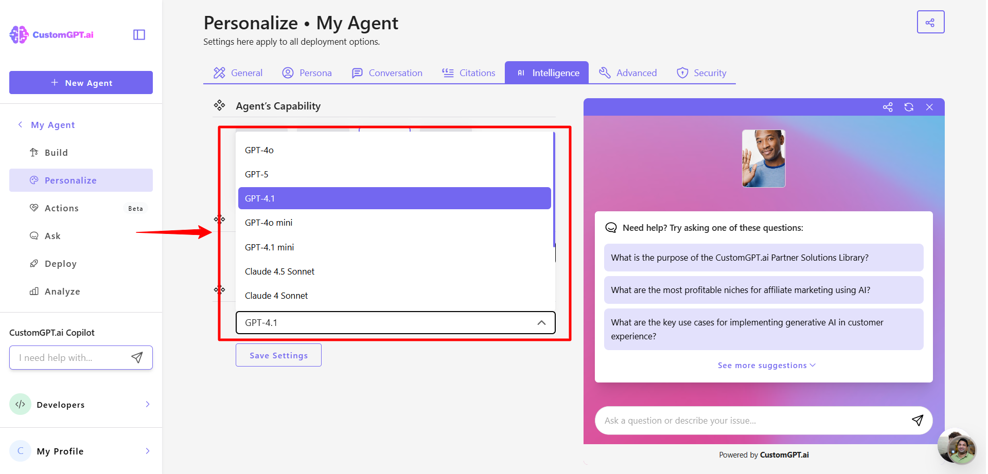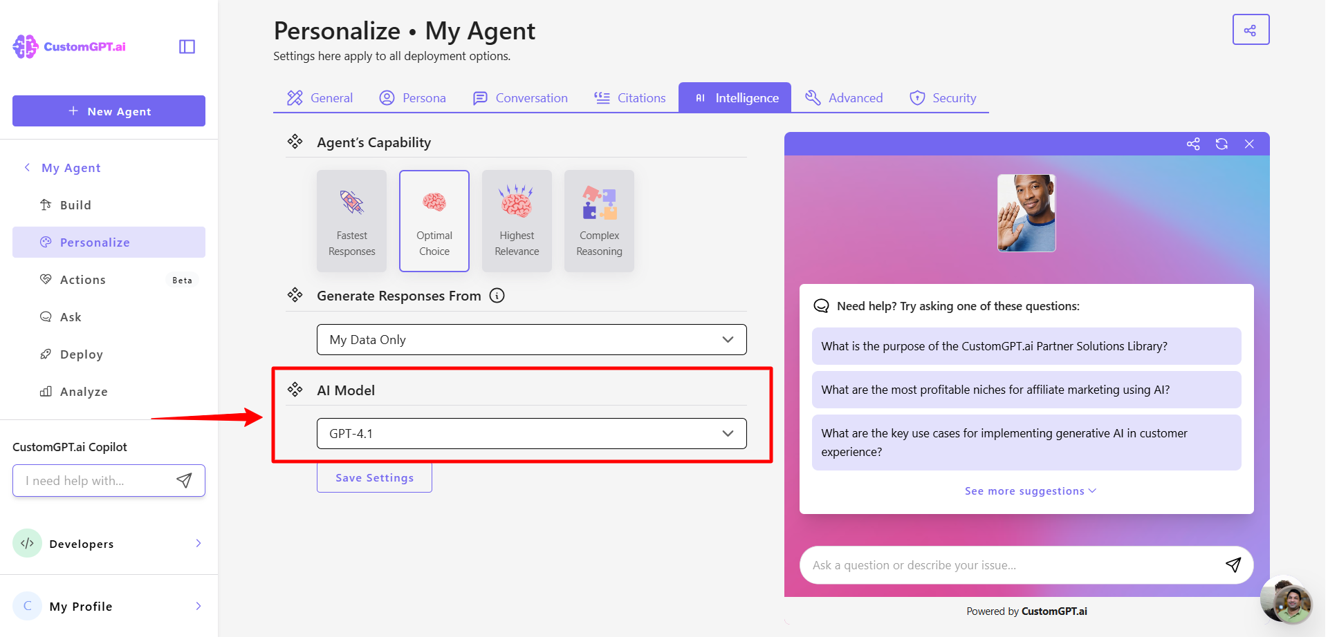 This step-by-step guide explains how to select the best GPT model for your AI agent. You can customize your agent’s capabilities by choosing the model that fits your goals.