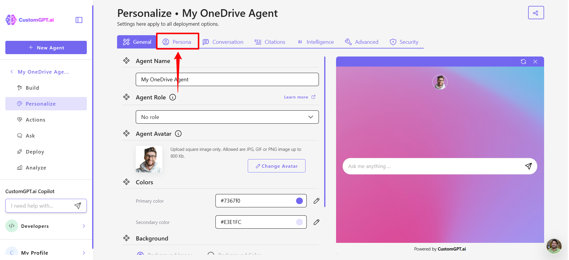 By customizing the Persona, you ensure consistent, context-appropriate communication that enhances user experience and reinforces your organization’s messaging.