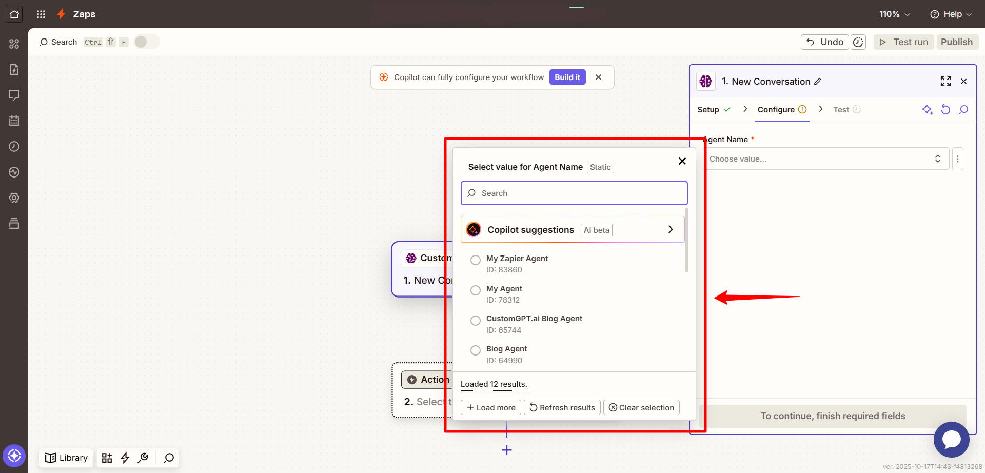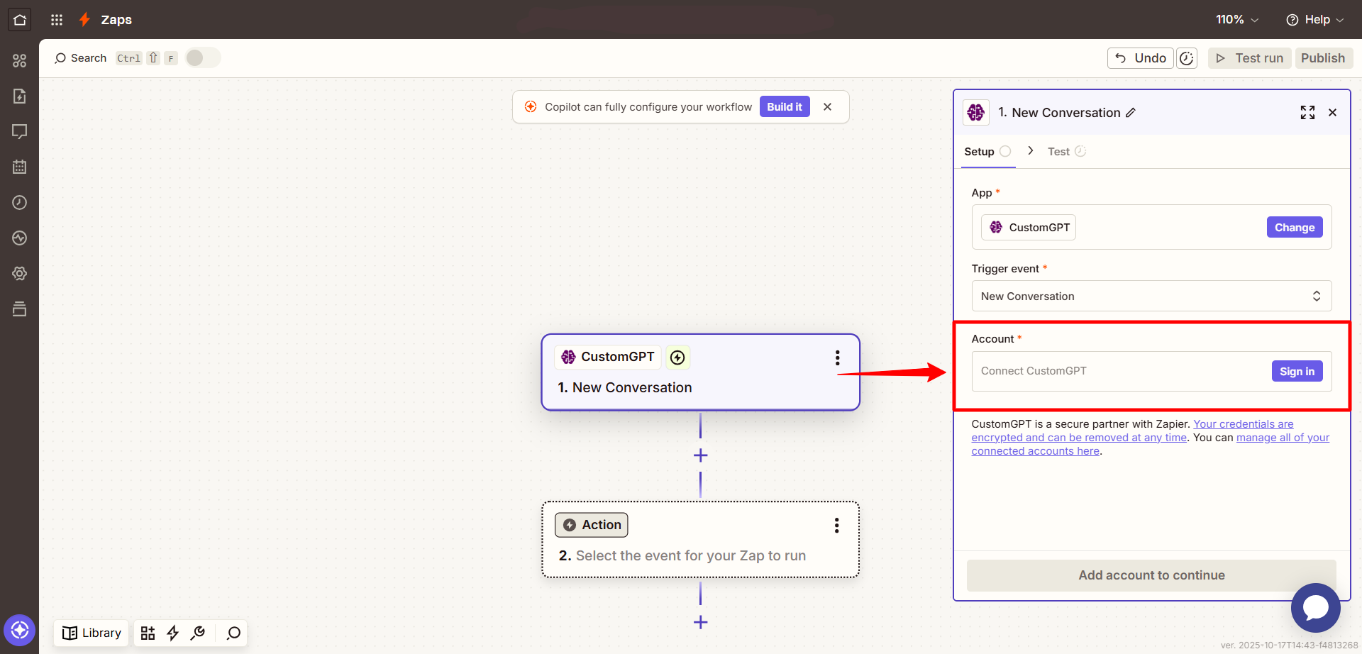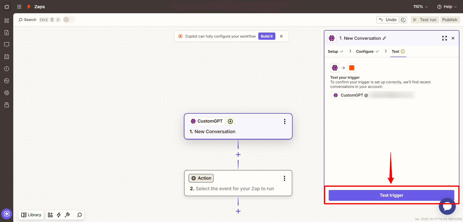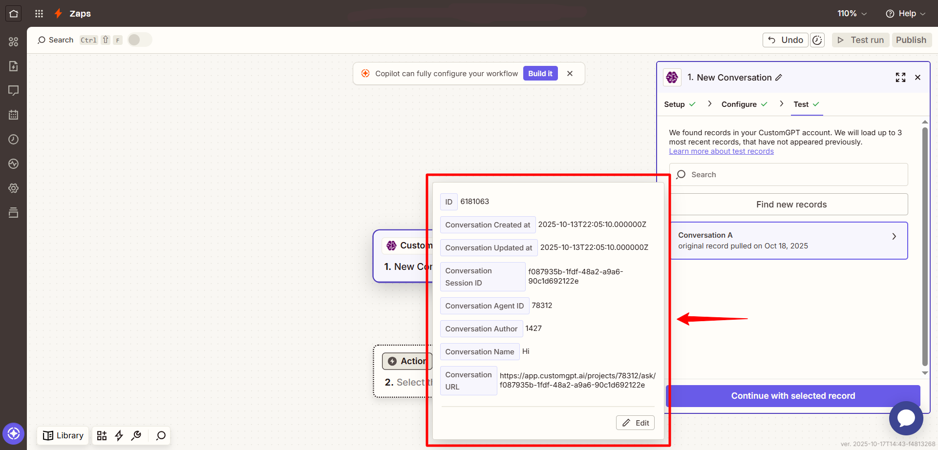 This guide shows you how to use the New Conversation event in Zapier to trigger workflows when someone starts a new conversation with your CustomGPT agent.