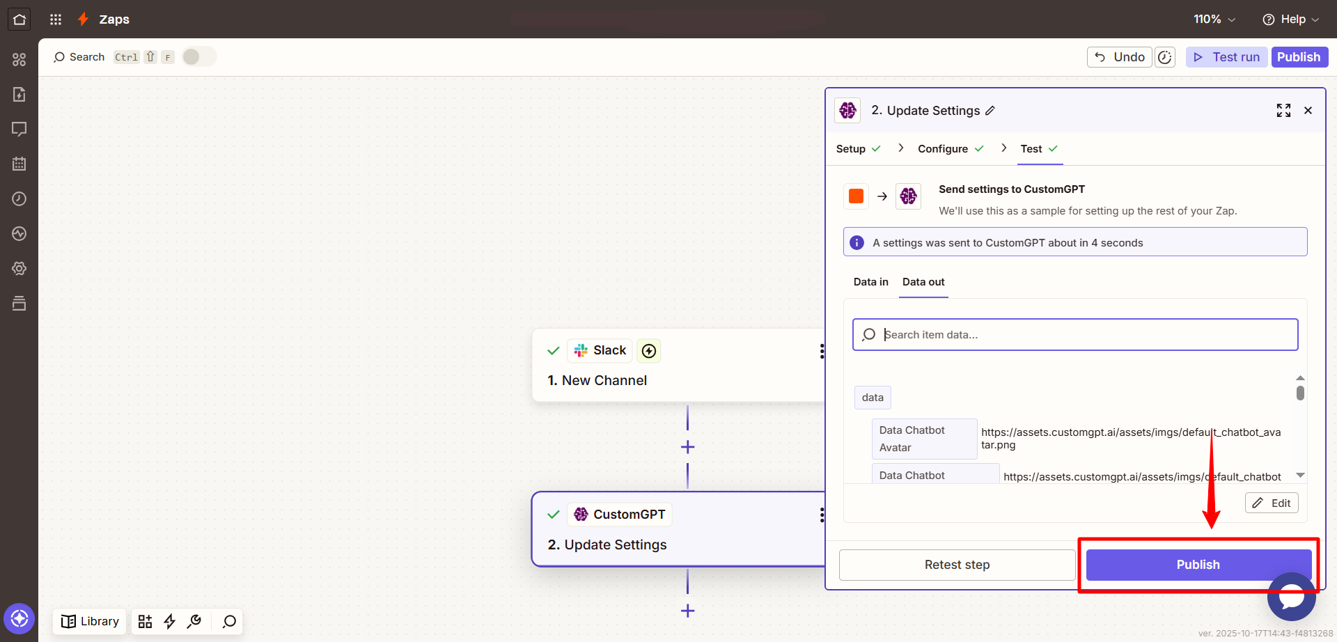 - Once confirmed, click Publish to activate your Zap.