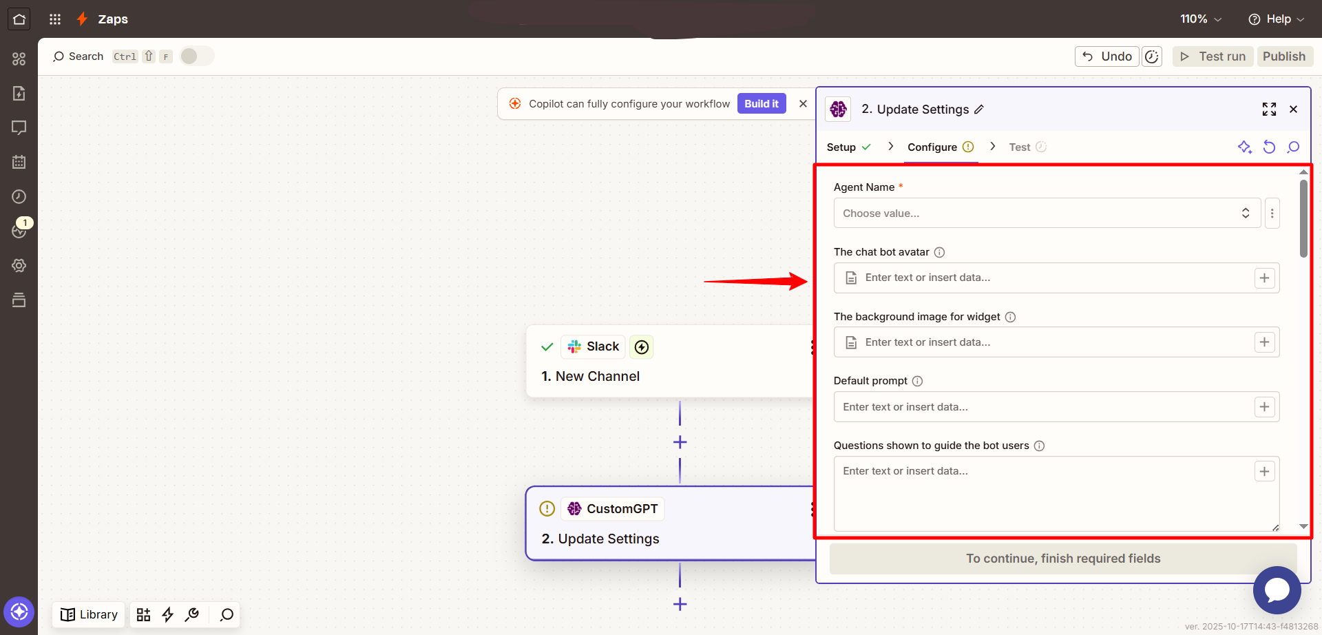 Update agent’s settings using Zapier