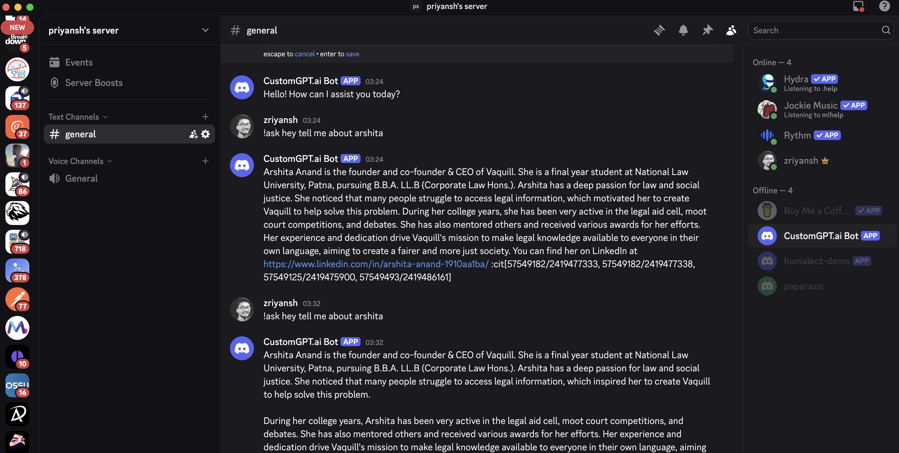 - Conversation Memory: Maintains context within Discord channels